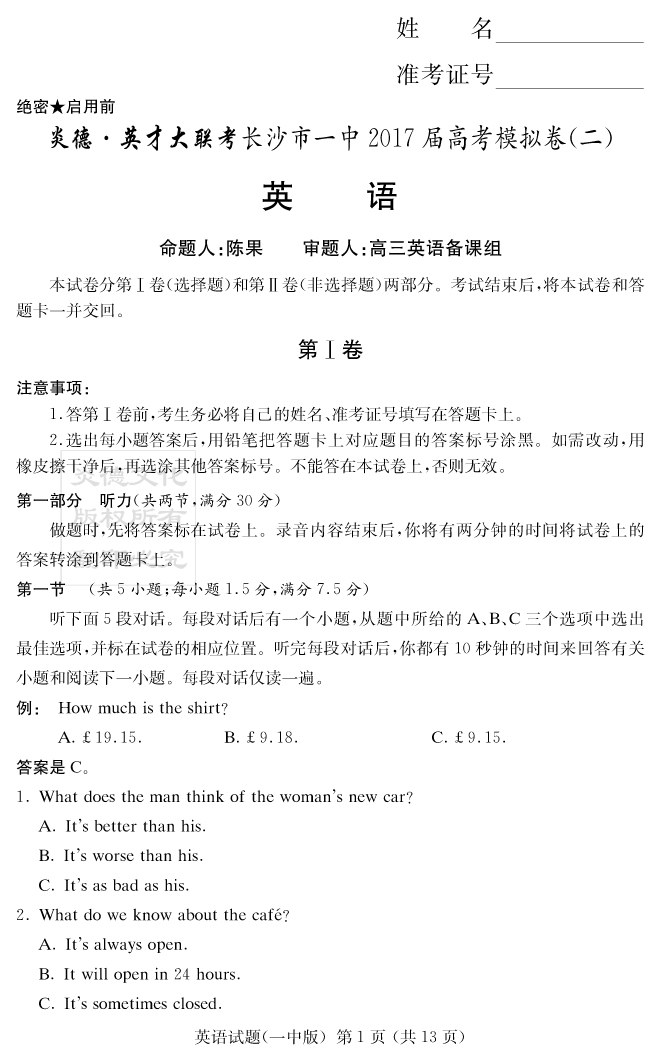 資源類別: | 名校月考 | |