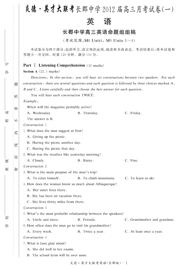 上一篇:【物理】炎德英才大聯(lián)考2012長郡中學高三1次月考